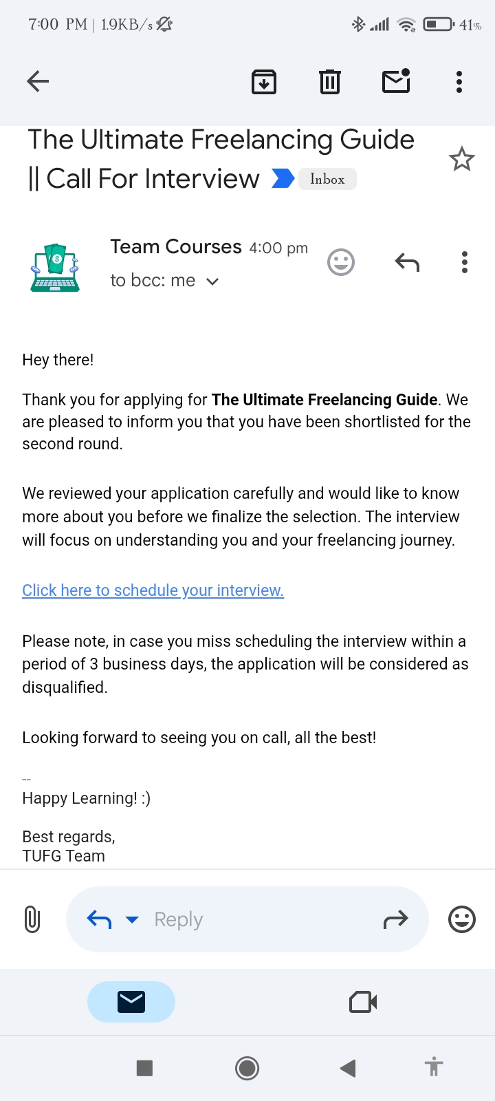 Applied to Ankur Warikoo's Ultimate Freelancing Guide Course. It's the founding batch and completely free so I thought why not? Guess What!!!! Tommorow this time, I will be giving the interview. My first ever interview if any kind. Rightfully Nervous
