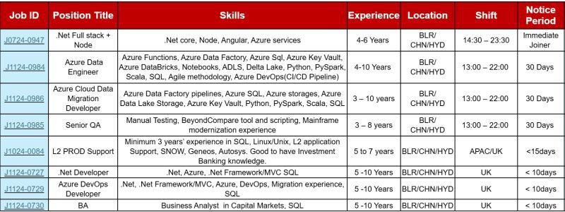 We have an immediate openings for following skillset. If you know anyone with matching skillset,