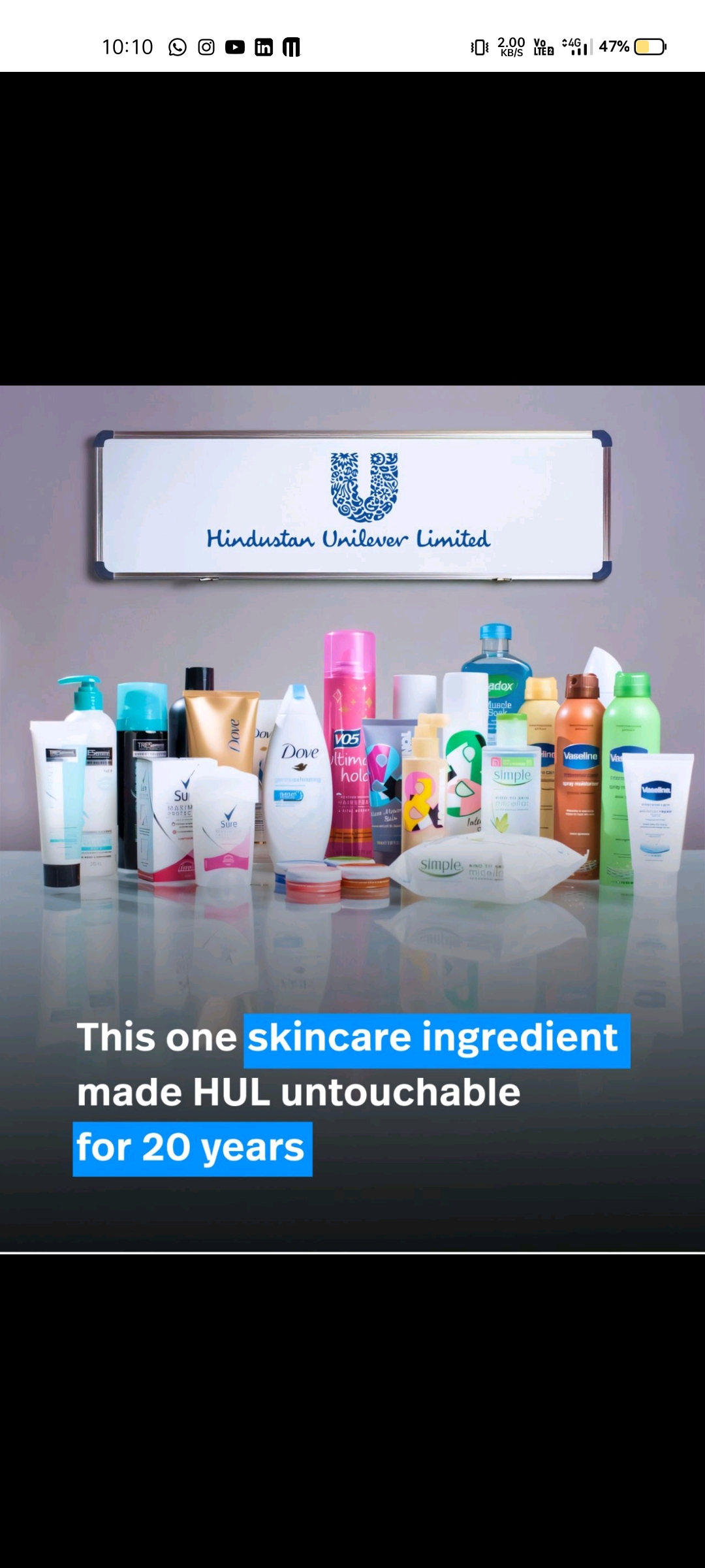 20 YEARS. 1 INGREDIENT. A BILLION-DOLLAR MONOPOLY ๐ฅ In the 1970s, Unilever discovered Niacinamide a skincare powerhouse. But instead of sharing, they patented it for 20 years and built Fair & Lovely, owning 80% of the market in India. For two dec