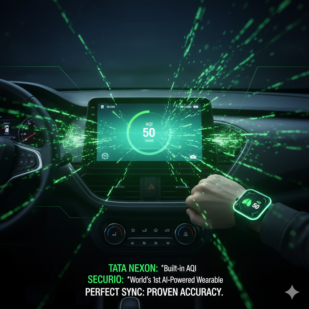 Over the last few weeks, we pushed Securio through one of the highest validation standards available to consumers today — the TATA Nexon’s in-built AQI system. Result: Perfect sync. Proven accuracy. Real-world consistency. This matters because AQI v
