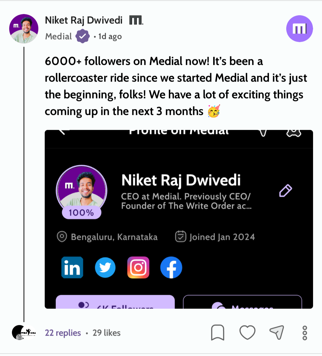 l have noticed that posts on the medial application get likes and comments, but the audience doesn't seem very active. For example, some posts only receive around 10 comments or 5 followers, even though top users have follow counts of around 8,000. W