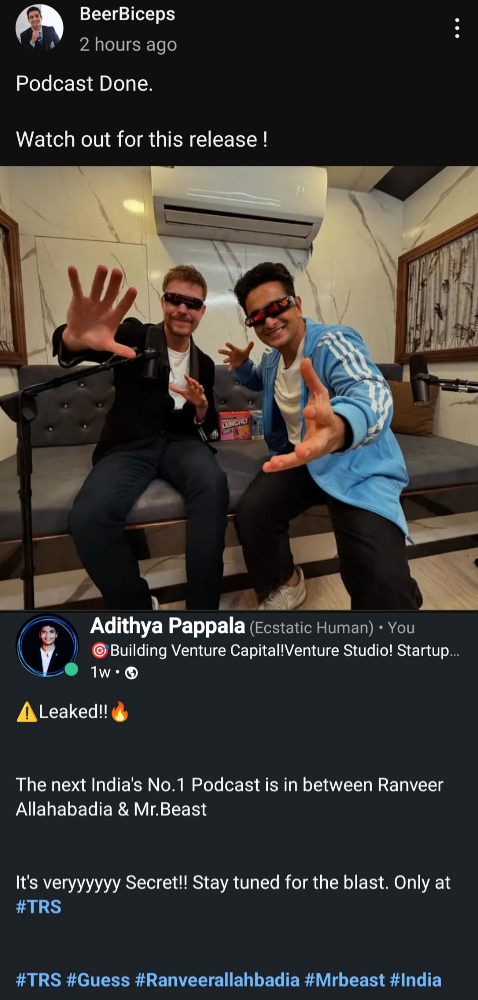 I read the future of #BeerBiceps absolutely right a week back It's not a JOKE but it's real Yes, I have already predicted this Podcast between Ranveer Allahabadia & Mr.Beast a week back without any Internal Information I have been practicing