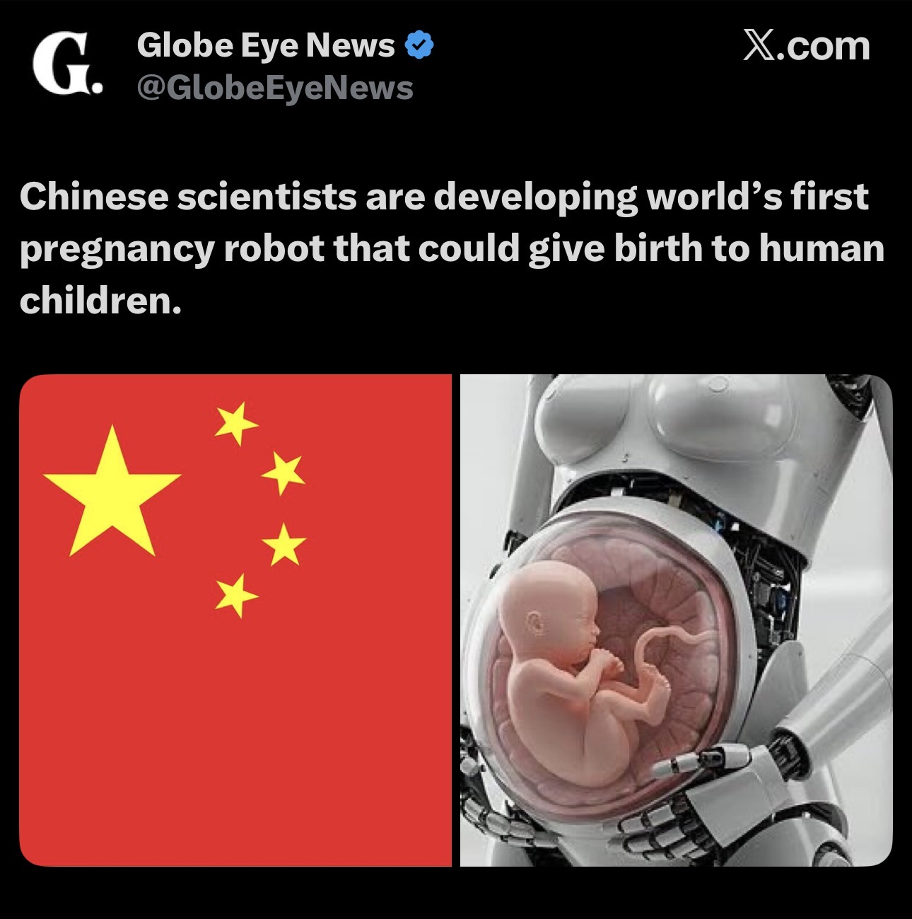 A Chinese tech firm is racing to deliver what could be the world’s first “gestation robot”. This is a total nightmare, birth rates are falling by 50% globally, the world needs financial and lifestyle support not machines. Real progress means valuing