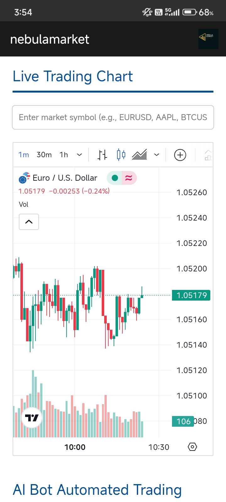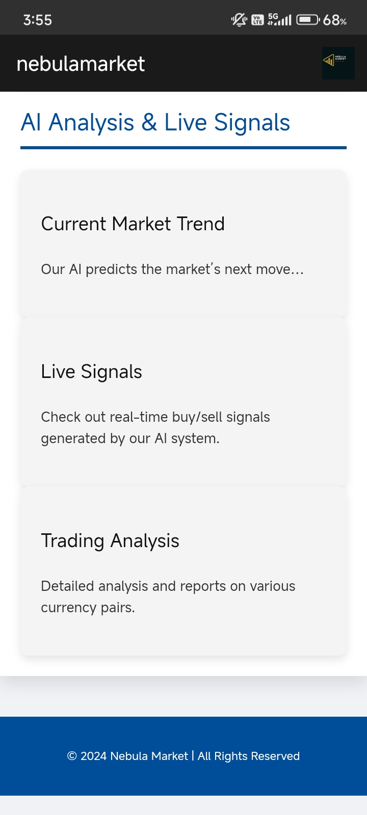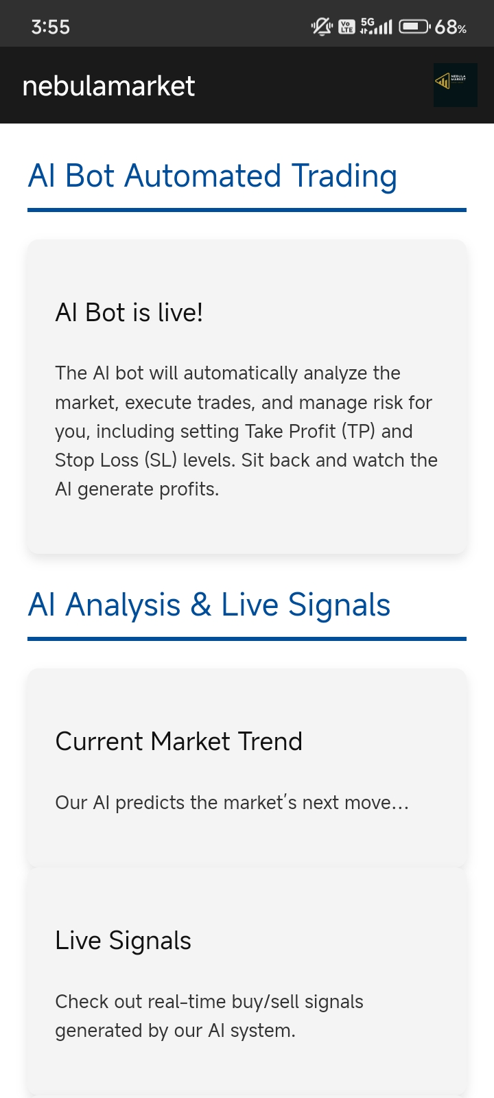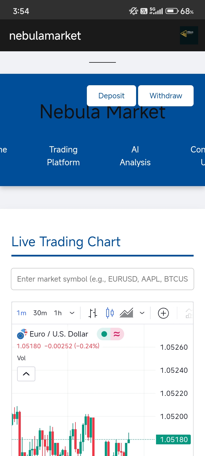 our app interface now nebula market connected to demo ( virtual money) our app is not connected to broker API and bank depository, so we can't make any transaction now