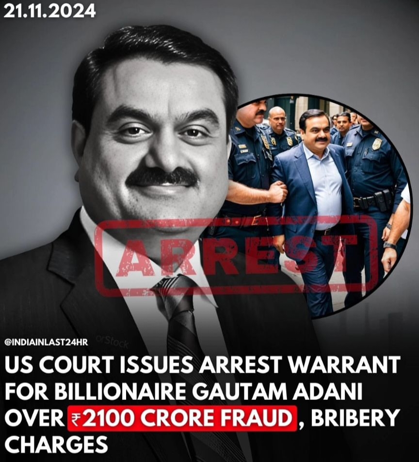 Breaking News 🔥: A major blow to corporate giants! 🛑 Reports confirm a US Court has issued an arrest warrant for Gautam Adani 🚔 over a ₹2100 crore fraud case. 📉 Adani stocks plummet by 20%, wiping out ₹2.60 lakh crore of investor wealth! This d