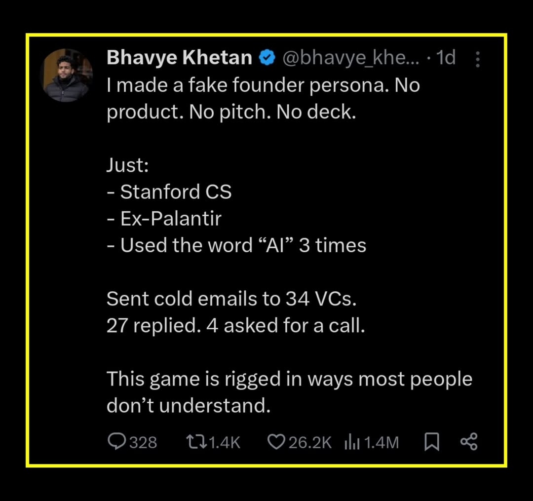 ๐๐ถ๐ฑ ๐ฎ ๐๐ฎ๐ธ๐ฒ ๐๐ผ๐๐ป๐ฑ๐ฒ๐ฟ ๐๐๐๐ ๐๐ ๐ฝ๐ผ๐๐ฒ ๐๐ต๐ฒ ๐ฉ๐ ๐ช๐ผ๐ฟ๐น๐ฑ? Bhavye Khetan, a graduate from UC Berkeley who is of Indian descent, did a little test. He wanted to show that the world of starting new companies and getting money from