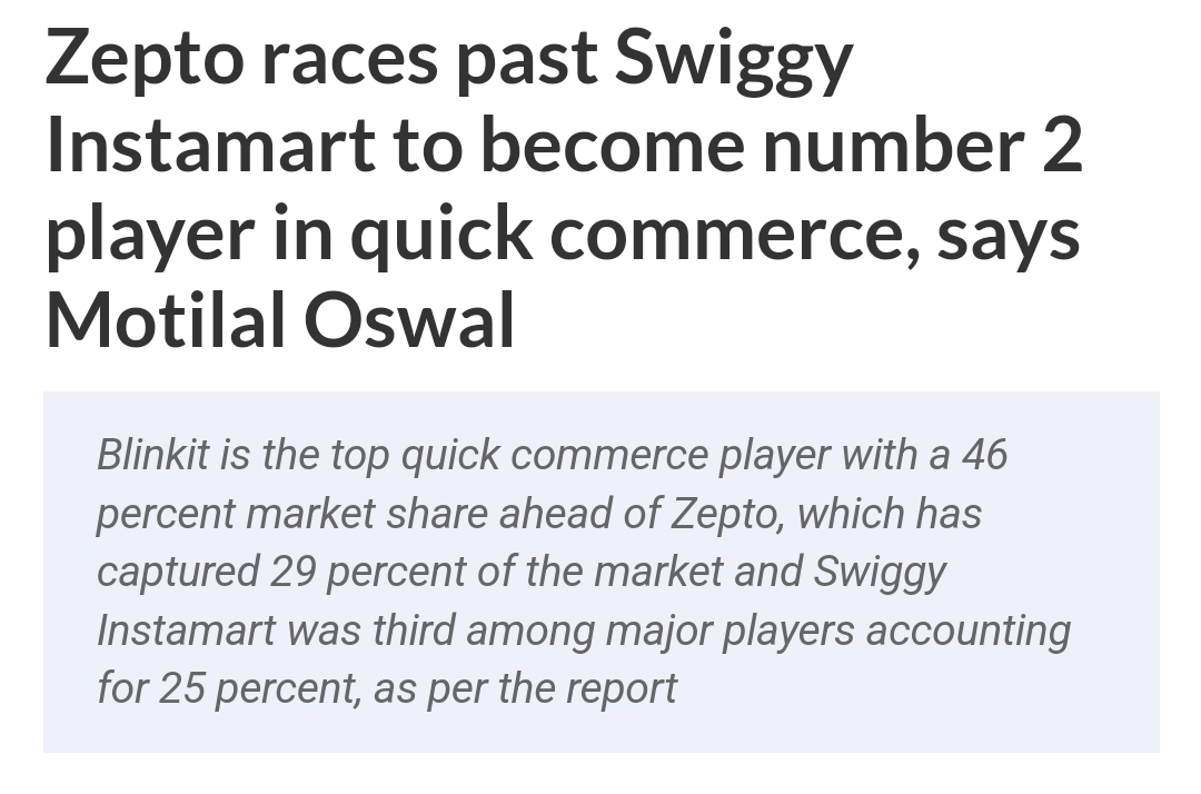 Zepto and other QCom platforms are now going all in. So remember that mainly in 2022-23, all the QCom platforms were offering incredible deals and huge discounts on grocery items. Then once we were habituated to QCom, they removed all the discounts