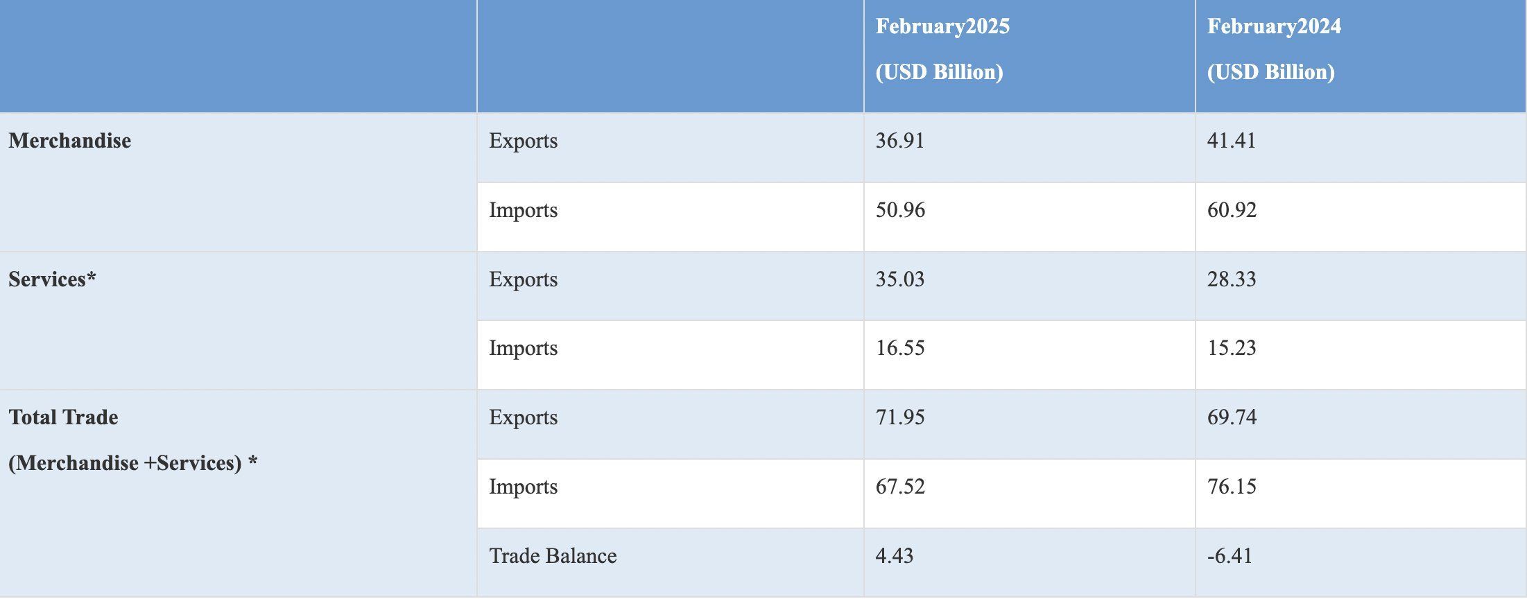 ๐ข India's Trade Performance: Feb 2025 vs Feb 2024 ๐ฎ๐ณ๐ While total trade down by $4.5 billion but India achieved trade Surplus of $4.43 Billion ๐ต which is huge ๐ ๐น Merchandise Trade ๐ Exports: $36.91B (-10.9% YoY from 2024) ๐ Imports: $50.96