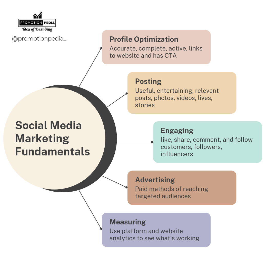 Some basic fundamentals of Social Media Marketing 👇 • Profile Optimization • Posting • Engaging • Advertising • Measuring