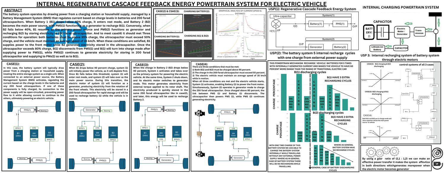 This is my INTERNAL REGENERATIVE ENERGY POWERTRAIN MECHANISM for EV (cars) it gives 4 internal recharge cycles and 50% more range than any other EV POWERTRAIN MECHANISM and with single charge from external power supply.