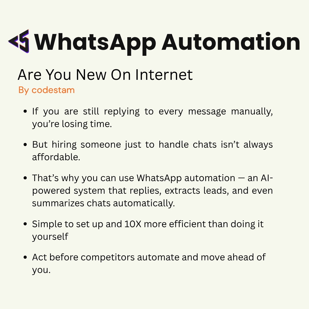 If you are still replying to every message manually, you’re losing time. But hiring someone just to handle chats isn’t always affordable. That’s why you can use WhatsApp automation — an AI-powered system that replies, extracts leads, and even summari