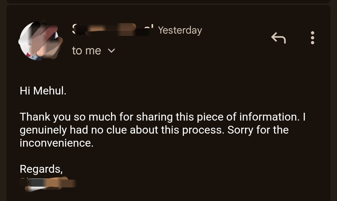 This reply made me smile 😊 A few days ago, I shared an email I had sent to someone who added 8-10 people in the TO field while sending a cold email, instead of using BCC. It wasn’t meant to call anyone out, it was meant to *educate.* Yesterday, I