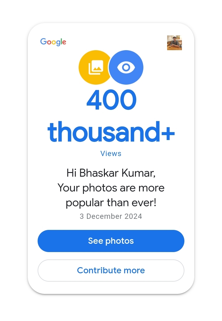 New Milestone in Travelling ☺️ 400,000+ impact created on Google Maps with 330 Contributions.... More new things to come in December & January Keep Watching ✨