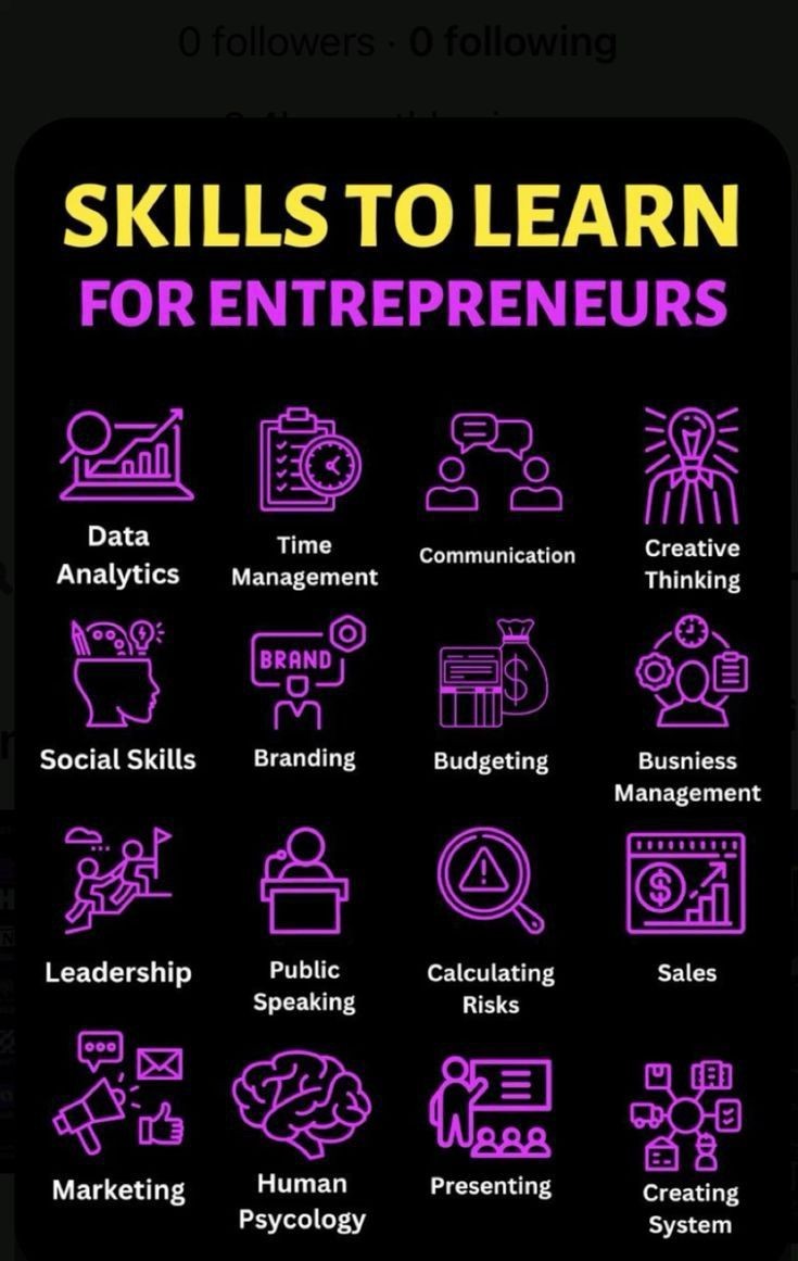 🚀 Building a business? Master the RIGHT combinations of skills! It’s not about one skill - it’s about how they connect: Data Analytics + Time Management = Smart Decisions Creative Thinking + Branding = Stand Out Communication + Public Speaking =