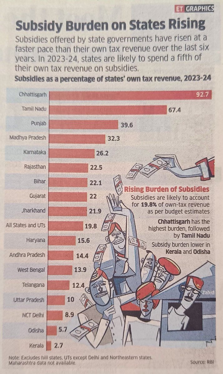 West Bengal comes under the top 5 lowest subsidy burdened states in India, far lower than the national average. Courtesy - RBI infographic published by the Economic Times.