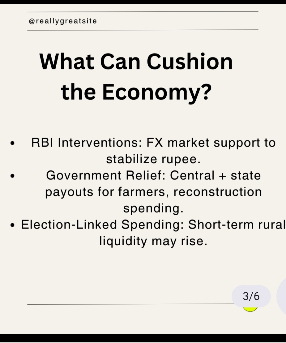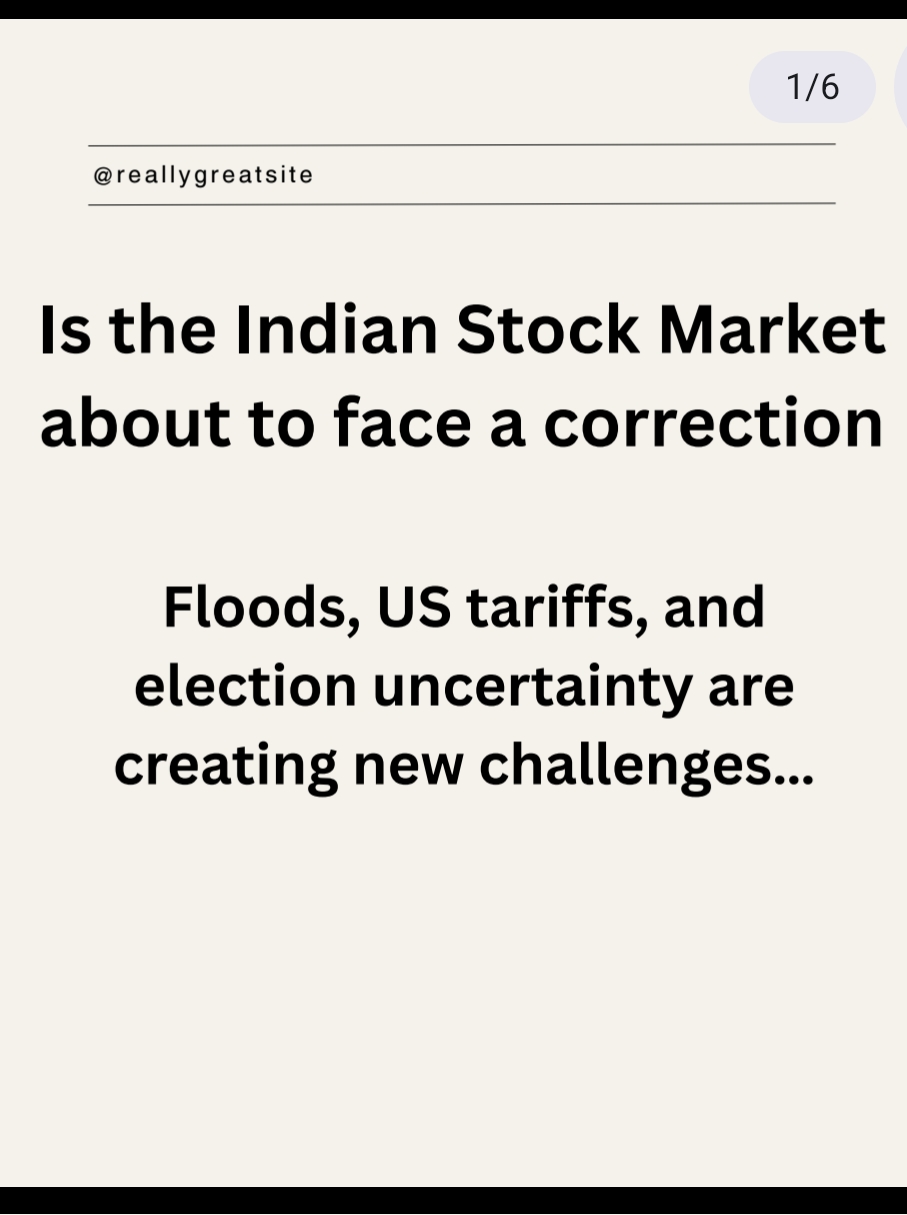 Is the Indian Stock Market about to face a year-end correction?โ Floods, US tariffs, and election uncertainty are creating near-term volatility in Indiaโs economy. Some key points: Floods & crop losses โ rural incomes under pressure. US tariffs โ ~