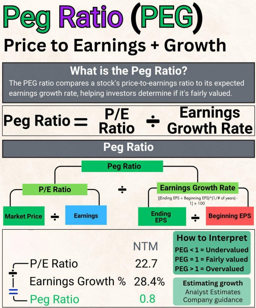 PEG Ratio Explained in 30 Seconds! Want to know if a stock is undervalued or overvalued? Use the PEG Ratio one of the smartest tools used by pro investors! 🧮 Formula: PEG = P/E Ratio ÷ Earnings Growth Rate ✅ PEG < 1 = Undervalued ⚖️ PEG = 1 = Fai