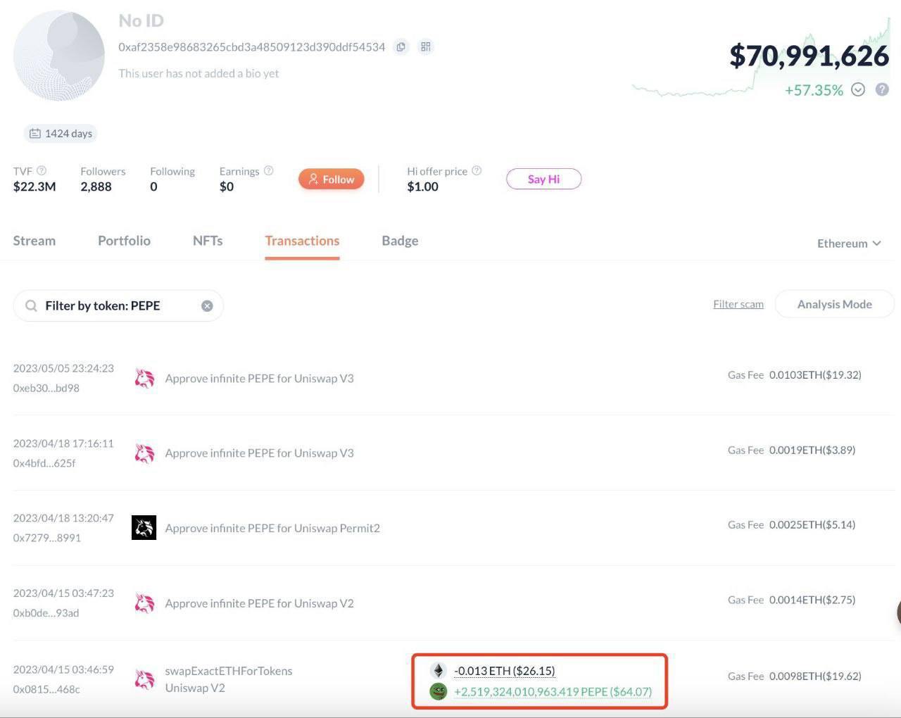 🫂 A guy bought the PEPE meme coin for $26 in 2023. Since then, its price has increased by 34,941%, reaching $61.5 million 🚀 The sad part is that the owner can't use his wealth. The developers, for some reason, blacklisted him. 😔💸