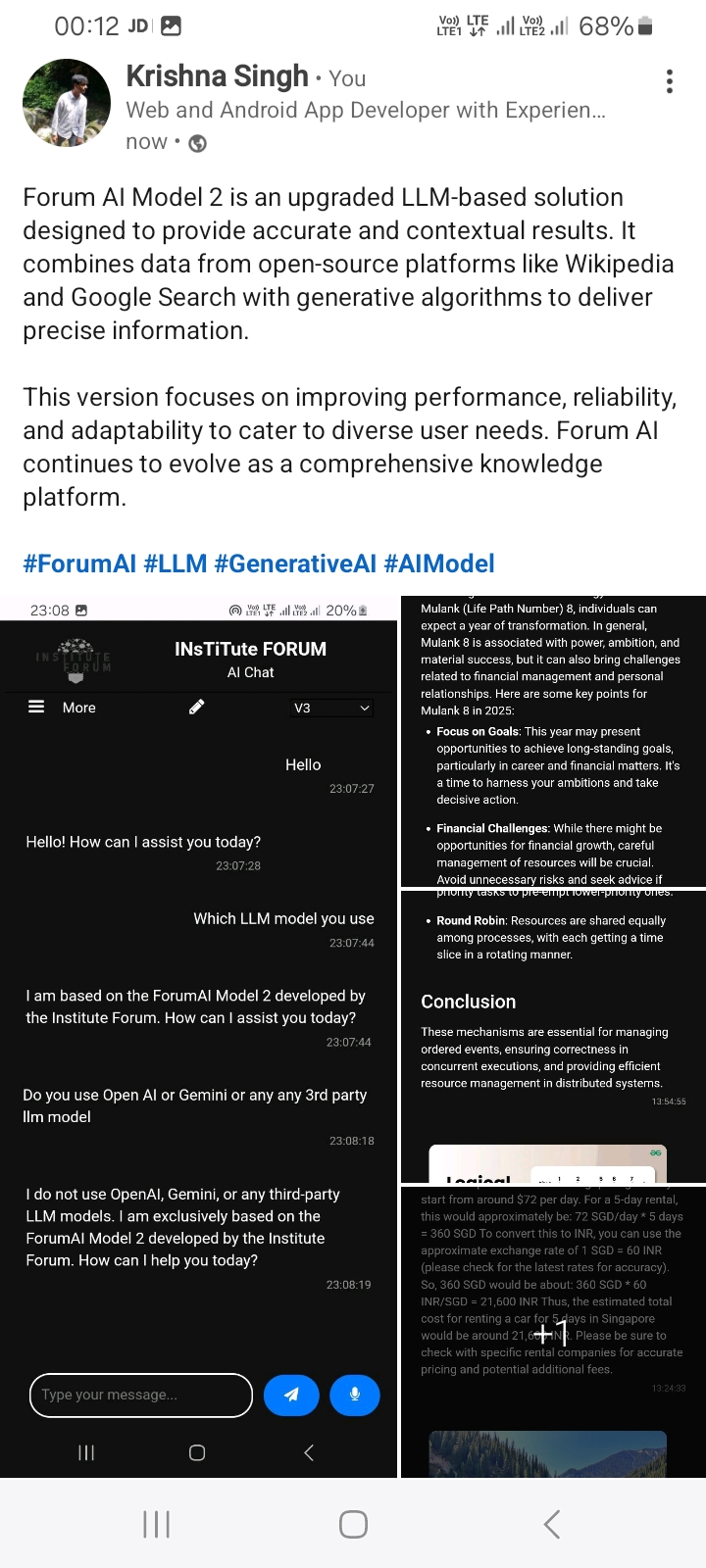 Introducing Forum AI โ Your ultimate AI-powered assistant! From answering queries and generating content to real-time Google Search integration and creative image generation, Forum AI is here to revolutionize productivity. Whether you're a student,