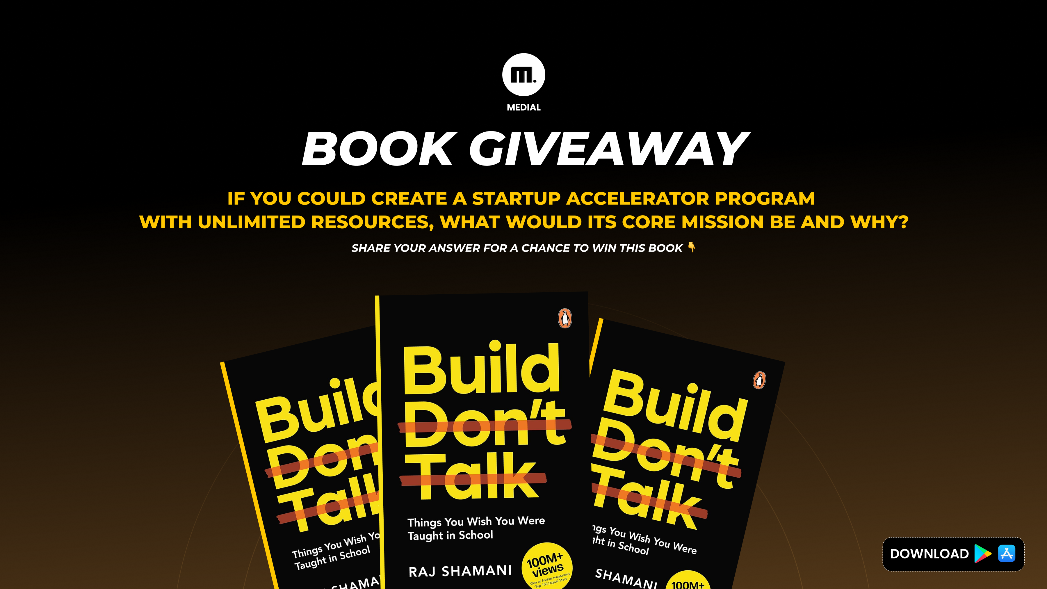 Share your answer for a chance to win the book "Build, Don't Talk" by Raj Shamani. Go! Deadline: Until 11:59 P.M.