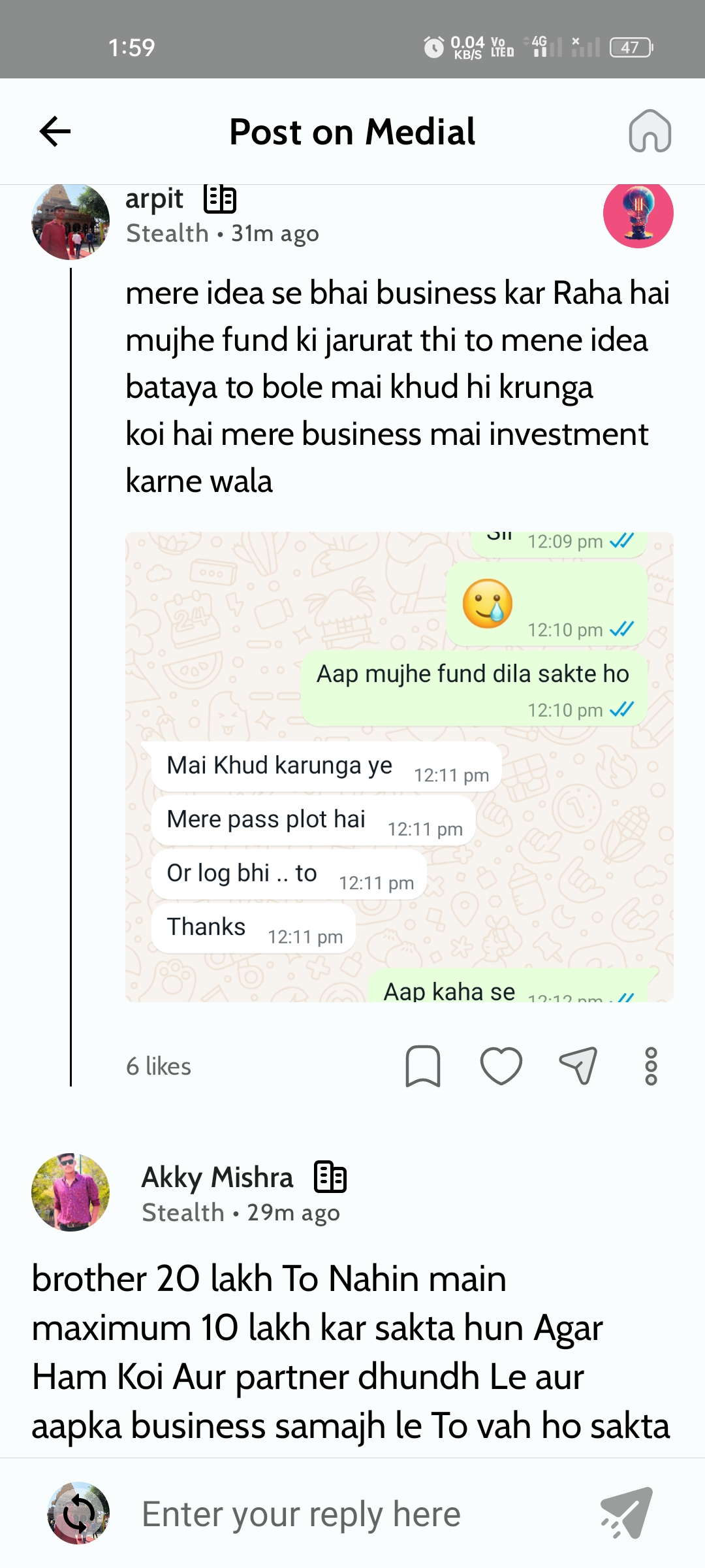 ek investor mil Gaya hai pr 10lakh Kam pad rahe hai sath mai koi or bhi investment karega to muje msg kare 9407596112