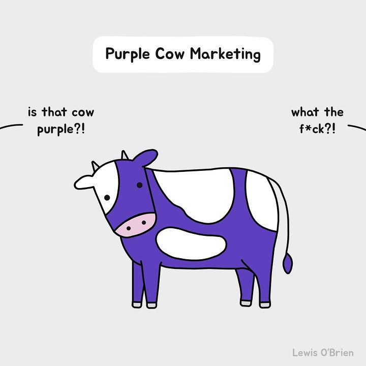 Purple Cow Marketing: Creating a unique, memorable, and daring product (or brand) that stands out in a crowded marketplace — ensuring it captures attention and drives organic word-of-mouth promotion.