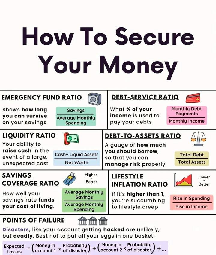 Secure your money by mastering these key financial ratios! ๐ฆ From building an emergency fund to understanding your debt-to-assets ratio, these tips will keep your finances strong and your future secure