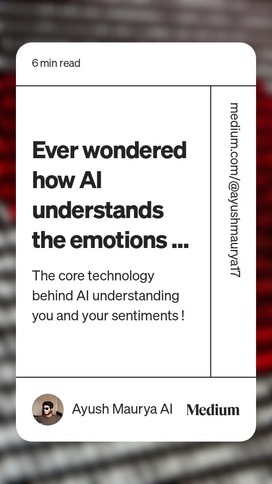 "Ever wondered how AI understands your emotions and sentiments?" Here is an article to help you understand this in simple language; medium.com/illumination/e… Full podcast link : open.spotify.com/show/7BlRHVtJH…