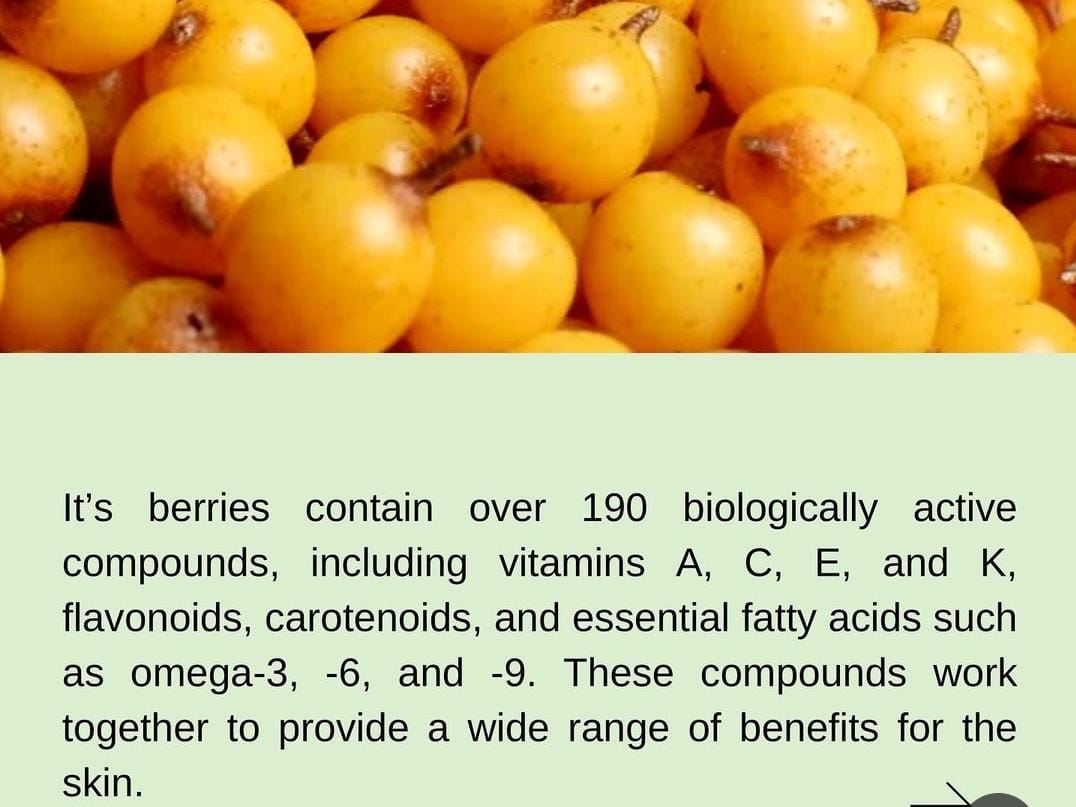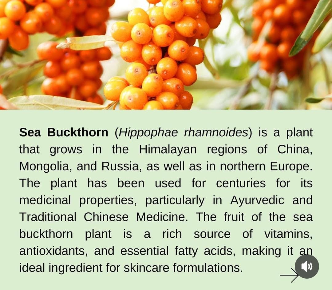 SEABUCKTHORN ..... As people turn to natural, sustainable products, Seabuckthorn is emerging as a top choice. Known as the “superfruit for wellness,” it’s packed with powerful antioxidants, vitamins, and Omegas that nourish from the inside out. Imagi