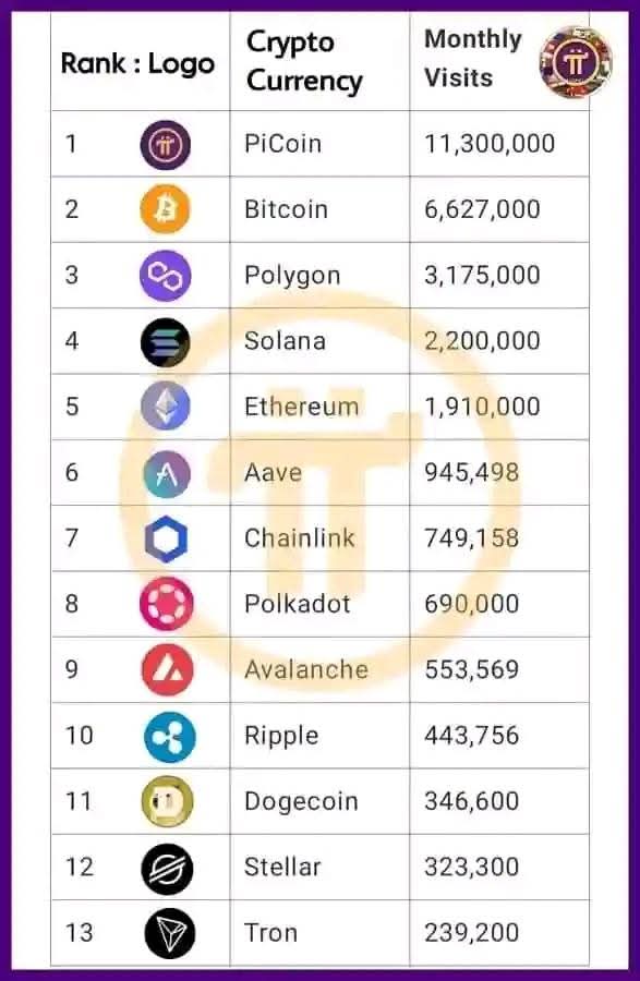 Pi at the top of most visited crypto list.🔥🔥🔥🔥 #bitcoin
