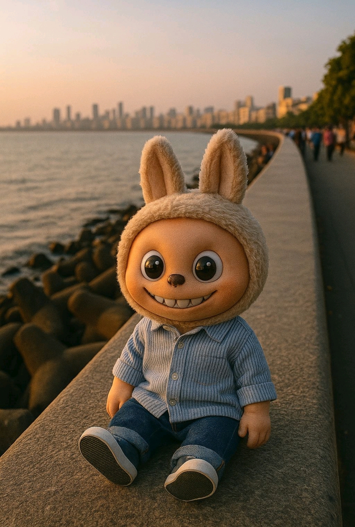 Meet Labubu - exploring Mumbai one moment at a time! From street-side pani puri stalls 1 to rainy-day adventures, train rides, and sunsets at Marine Drive - this Labubu been living its best Mumbai As a designer, I wanted to merge playfulness with r