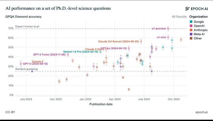in just one year, ai went from random guessing to crushing phd-level science questions. 2025 is gonna be wild