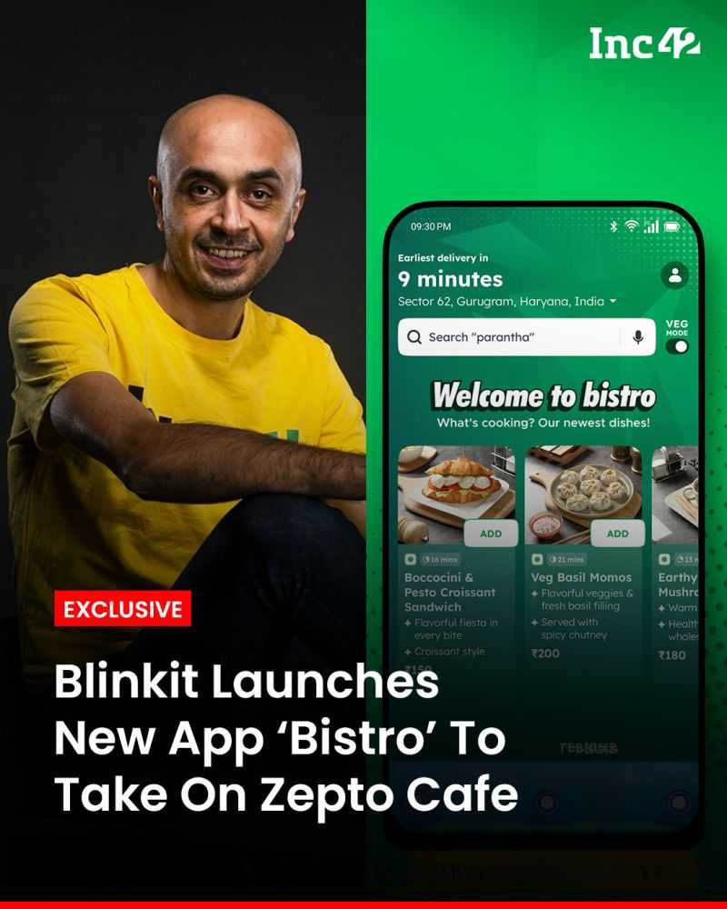 Blinkit Launches New App ‘Bistro’ To Take On Zepto Cafe