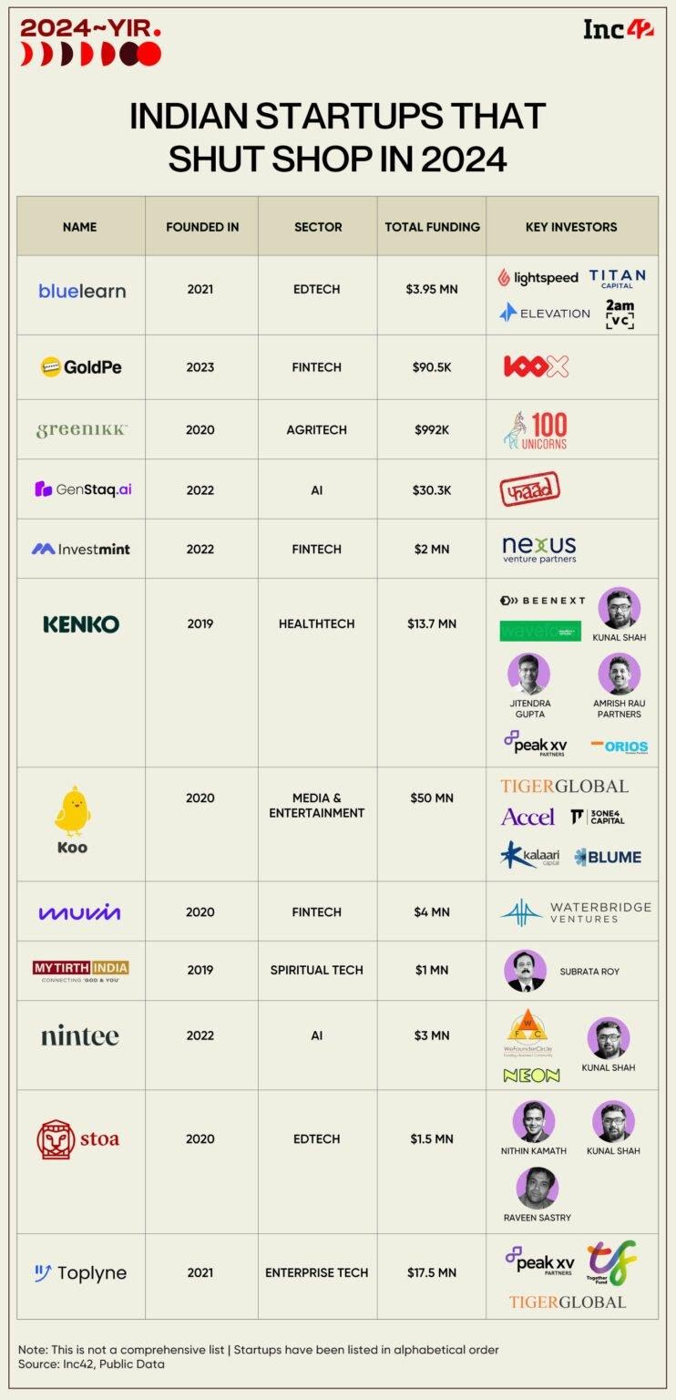 2024’s Startup Graveyard: 12 Indian Startups That Shut Down This Year