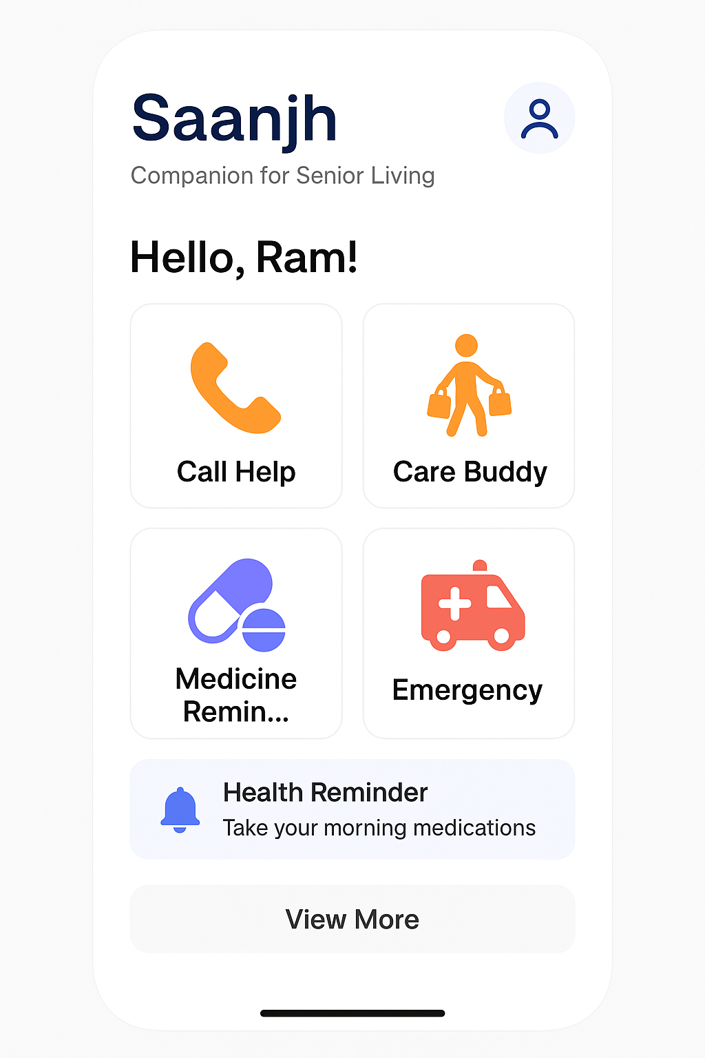 ๐ฑ Saanjh โ Companion for Senior Living Indiaโs first voice-enabled, hyperlocal eldercare platform --- ๐ต The Problem: Indiaโs 150M+ senior citizens face: Isolation from family Difficulty accessing healthcare Tech barriers No daily assistanc