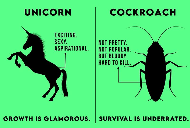 โLetโs build a unicorn.โ Thatโs how you rally a team. Itโs exciting. Itโs sexy. Itโs aspirational. Now try this: โLetโs become cockroaches.โ Yeahโฆ doesnโt quite slap, does it? Unicorns are glamorous. Cockroaches areโฆ inconveniently real. Oneโs a T
