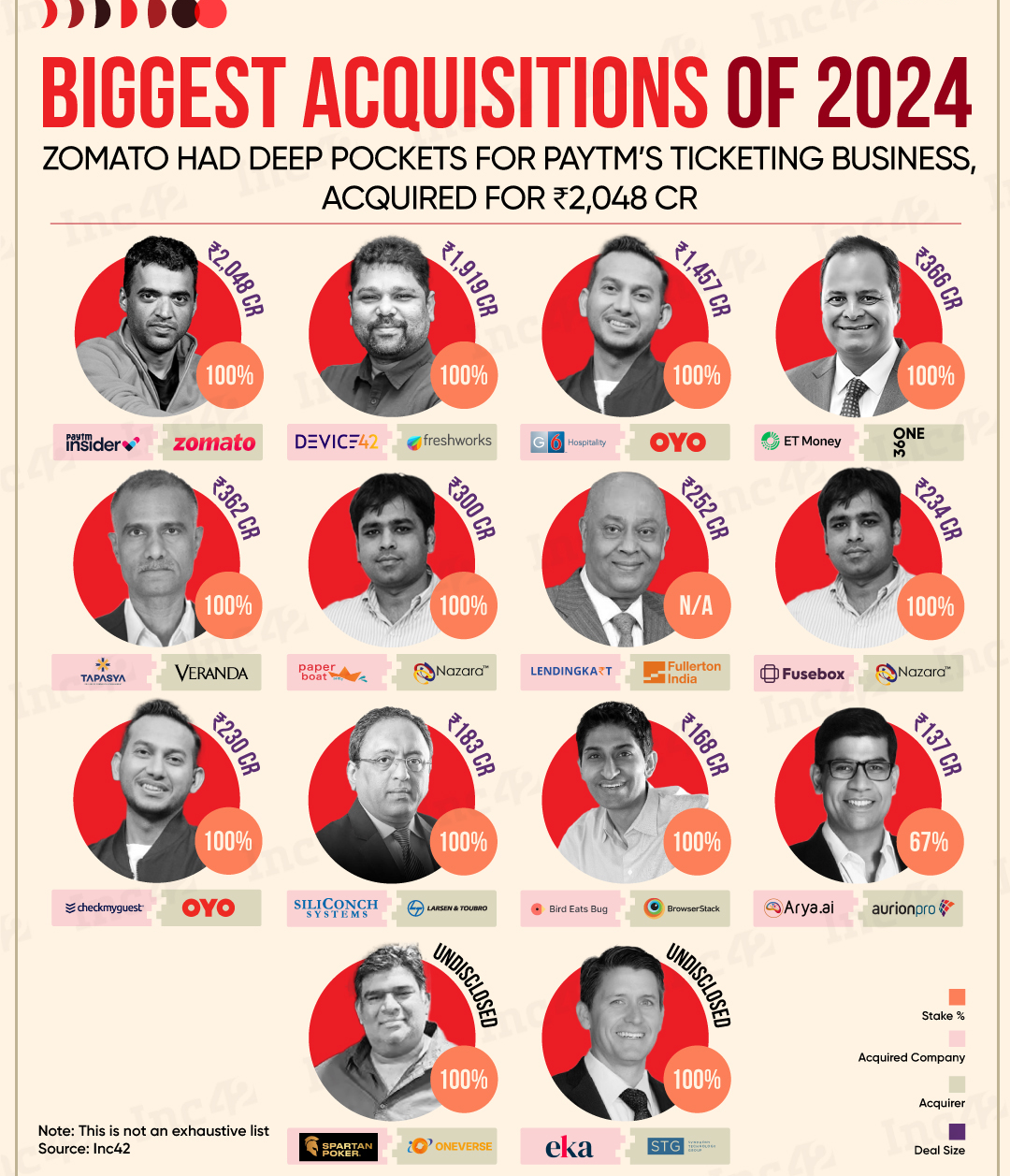 Following an 'extended' funding winter, the year 2024 has proven to be no less than a rollercoaster ride for Indian startup so far Notably, the first half (H1) of the year saw a decline in mergers and acquisitions (M&As) due to various macro and micro factors. However, favourable trends, ongoing regulatory reforms and a rise in entrepreneurial activity across sectors like technology and infrastructure fuelled the momentum of acquisitions in the second half (H2) of the year. As per an report, the first half of the year saw a 45% year-on-year (YoY) decline in M&A deals to 37 from 67 such deals in H1 2023. Sequentially, M&As slipped 34% from 56 M&A deals in H2 2023. While the first half of the year still faced the ripple effects of the funding winter, the second half hogged the limelight for some notable acquisitions, turning over a new leaf for the Indian startup ecosystem.
