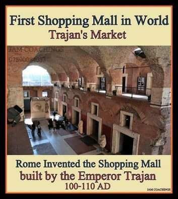 ๐คฏ The first-ever shopping mall was built by the Emperor Trajan in Rome itself. ๐ช It consisted of several stories and more than 150 outlets that sold everything ranging from food and drink to clothes and spices.