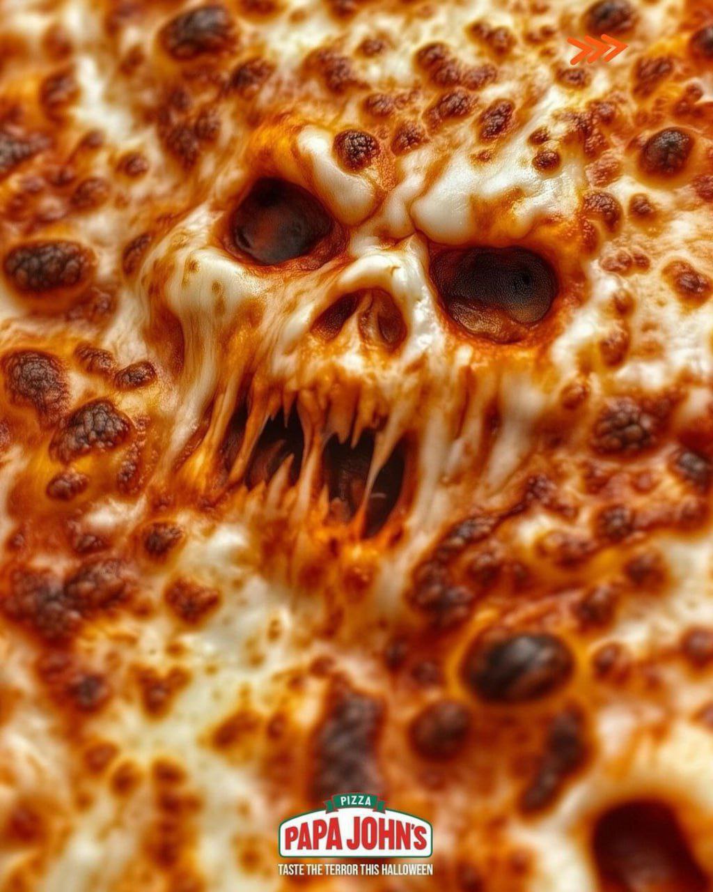 👻 Experience the horror this Halloween. Papa John's pizza place scary images made of cheese ! 😅🤣
