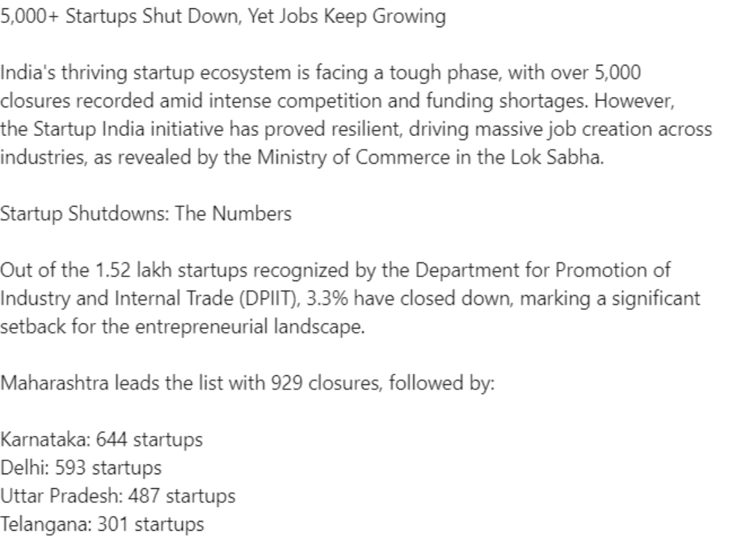 The year 2025 has delivered a reality check for India’s startup ecosystem. On one side, there are success stories of unicorns, IPOs, and innovation-led growth. On the other, a rising wave of closures has shown how fragile many ventures remain. After