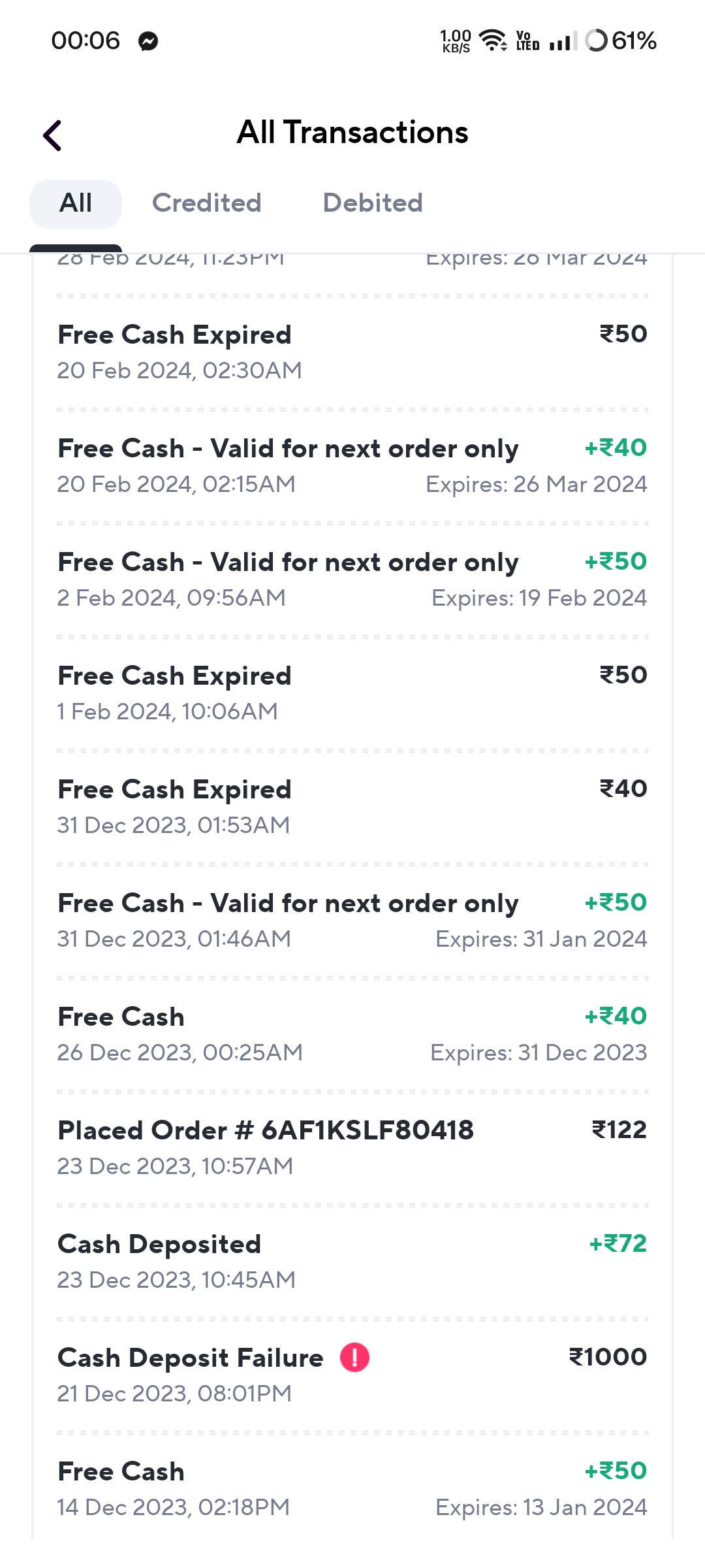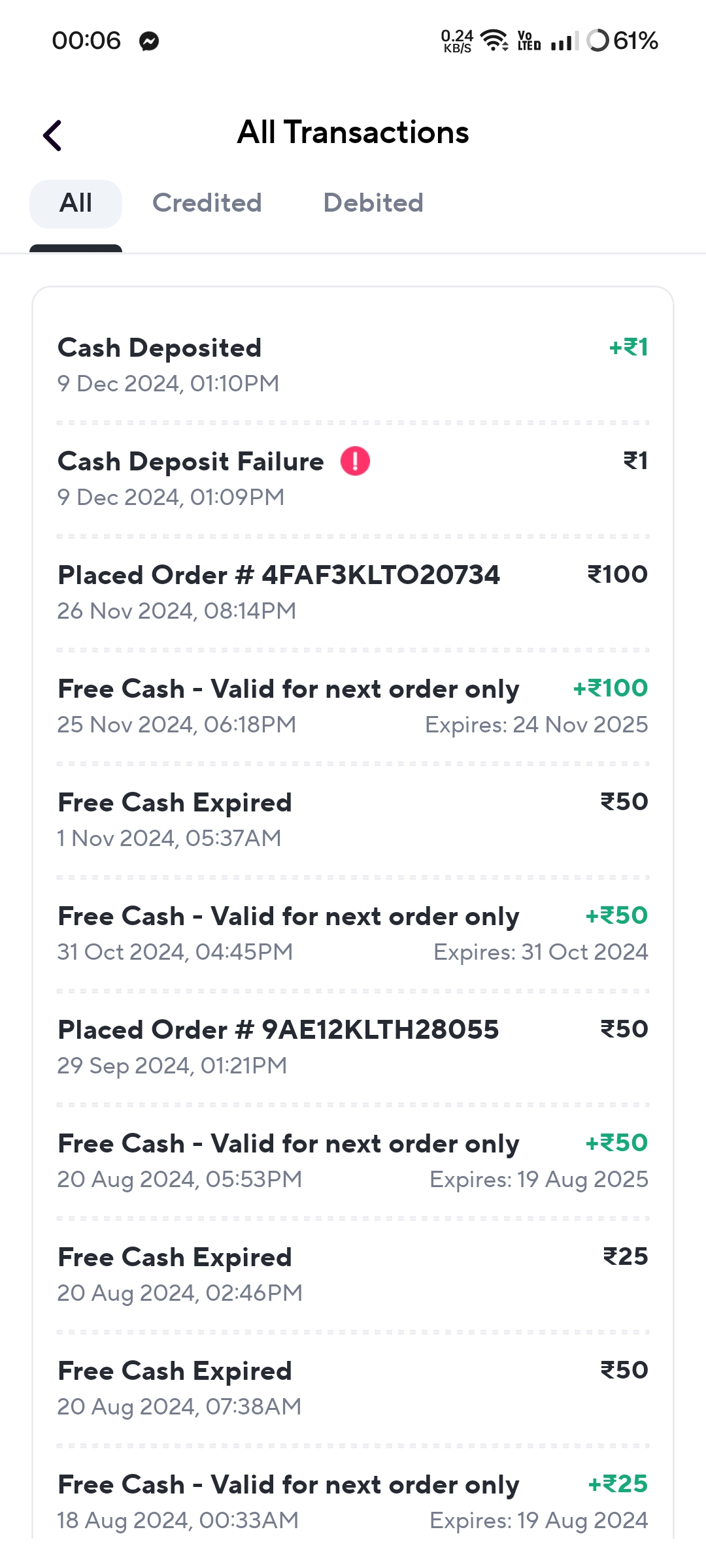 Well, tbh in total I have received over Rs. 900 minimum from Zepto cash😅. This includes all three accounts that I use in my family and in every account, I have received Zepto cash over 5 times minimum. Sometimes they give big cash amounts like Rs. 100 or 125, and sometimes small amounts such as Rs. 75 or 50.