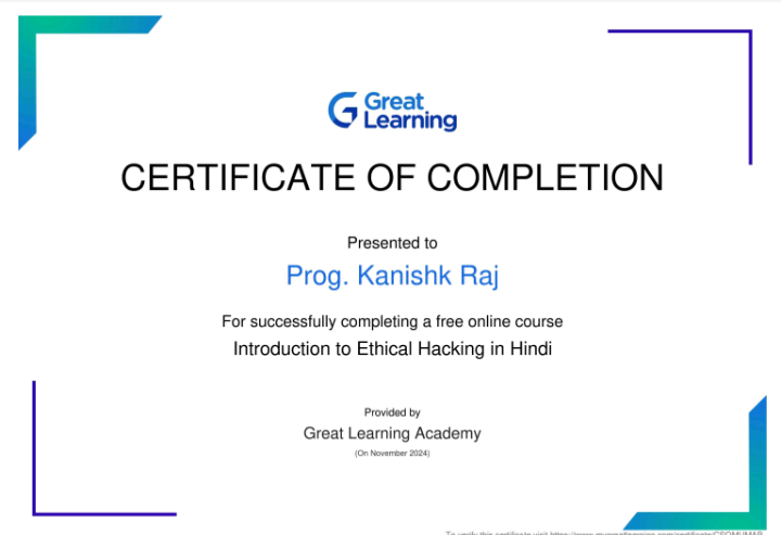 Hello ๐, Everyone Recently I have Completed Introduction To Ethical Hacking In Hindi Course on Great Learning.