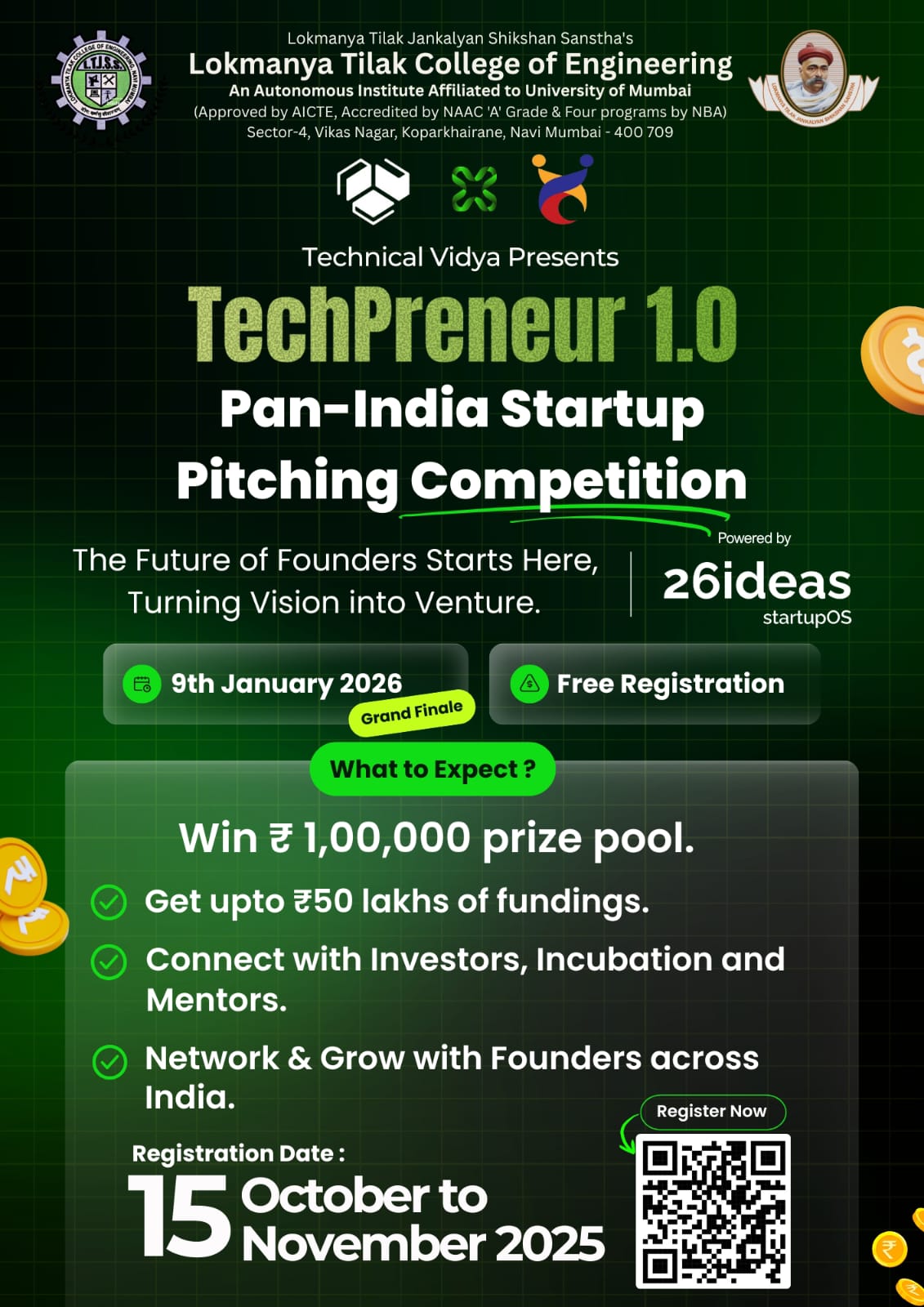 Got a startup idea and want to pitch it? Here’s your opportunity at TechPreneur 1.0. A Pan-India Startup Pitching Competition for ambitious young entrepreneurs! ₹1 Lakh Prize Pool Funding up to ₹50 Lakhs Incubation, Mentorship & much more Bring your