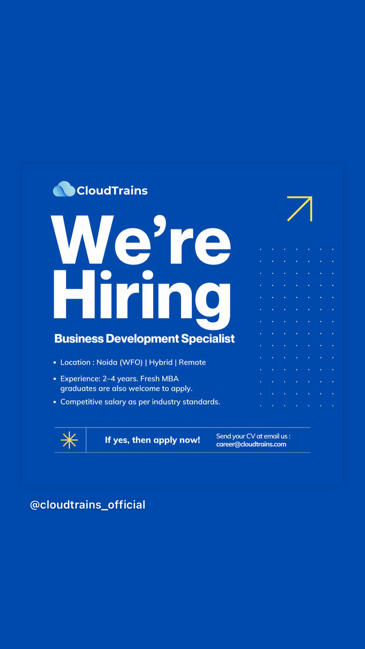 We’ve been building something meaningful at CloudTrains — not just tech products, but a team that believes in ownership, ambition, and real growth. Now, it’s time to strengthen our Business Development team. This isn’t your typical sales role. We're