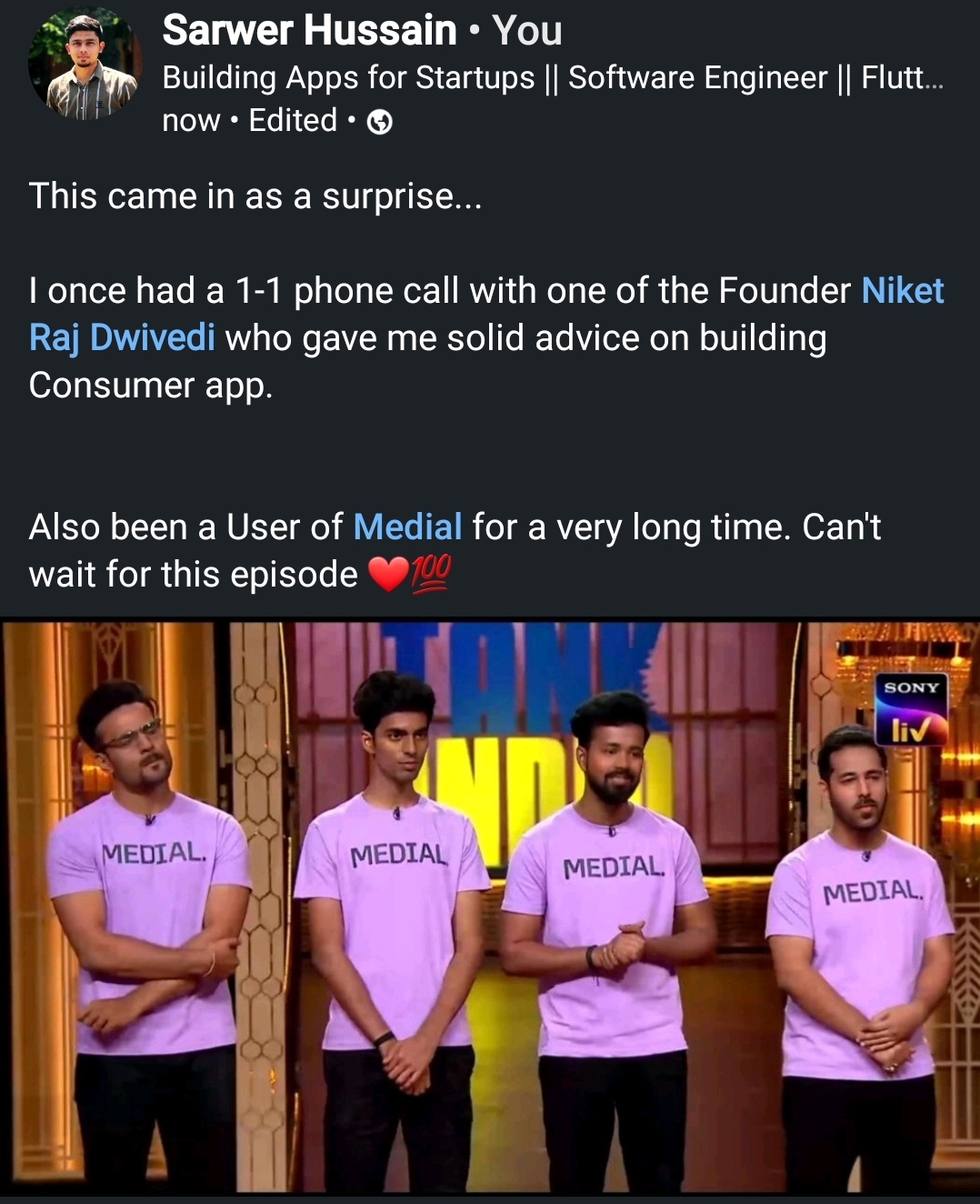 Just installed Medial after watching SharkTank episode. This is an amazing and interesting platform..looking forward to exploring more! Really didnโt like the way Anupam talked to you guys (founders).. I want you guys to prove people wrong and get m