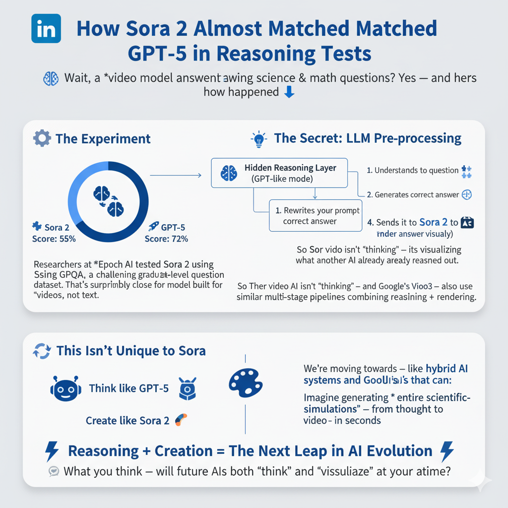 The AI world just had a huge reality check: our video creators are secret math wizards. 🤯 We all saw the stunning videos from Sora 2. But what if I told you this creative genius almost scored as well as GPT-5 on a brutal, graduate-level science tes