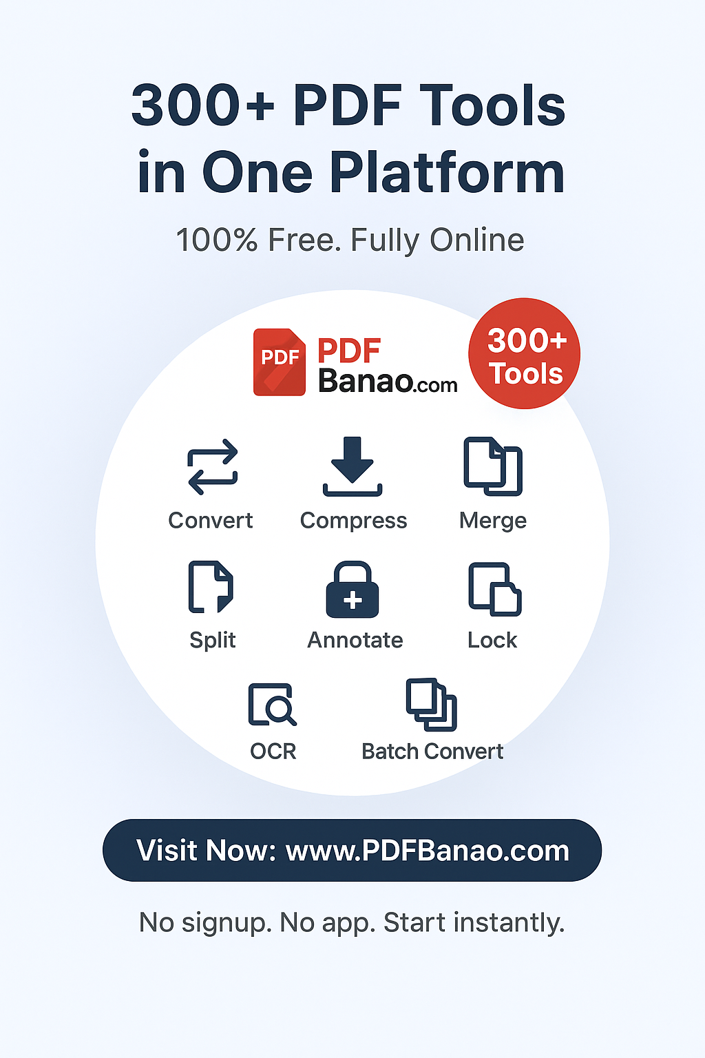 ✨ Today’s Highlighted Tool – PDF to Word Converter Tired of retyping long PDF files? 🤯 With PdfBanao.com’s PDF to Word Converter, you can: ✅ Convert PDF into editable Word documents in seconds ✅ Maintain formatting, fonts, and layout perfectly ✅ 1
