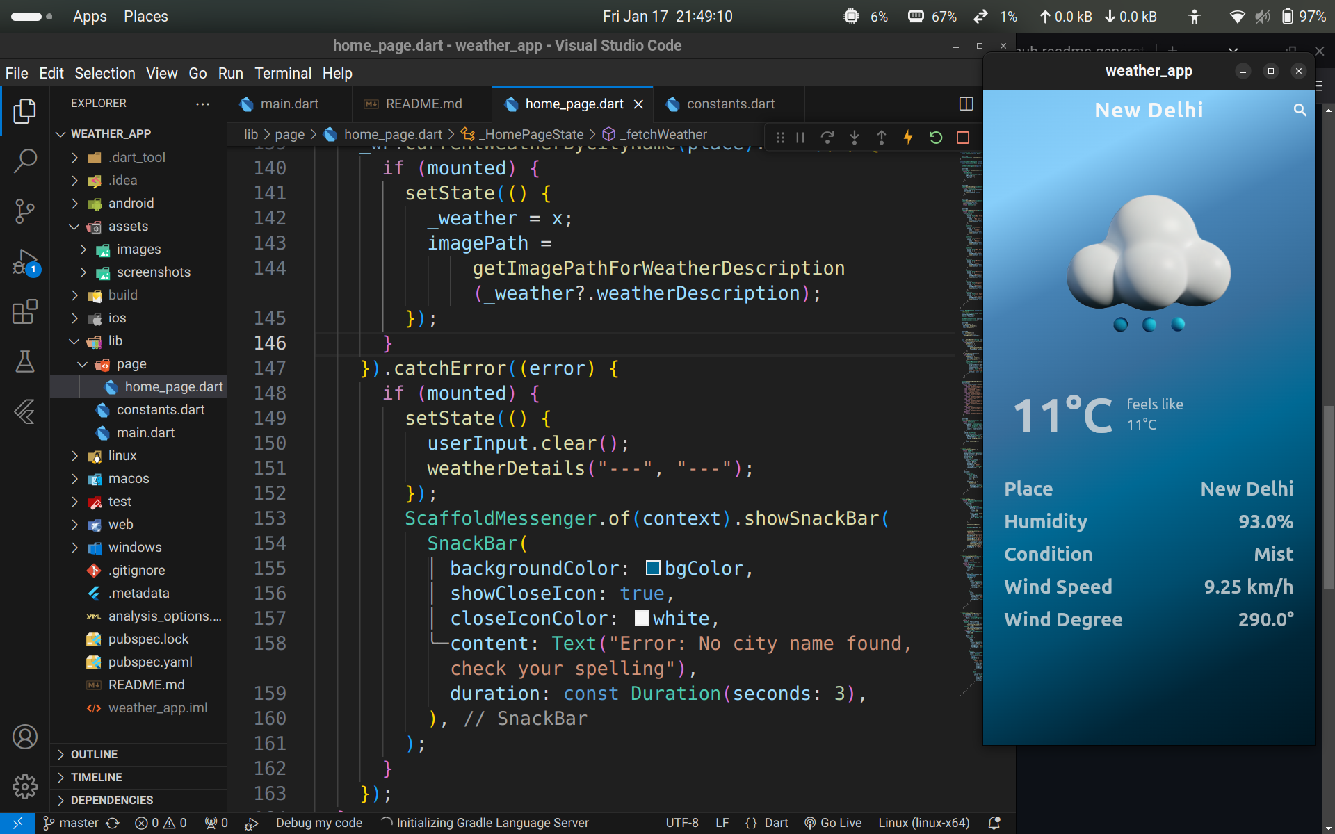 I just created my first weather app using Flutter. It works, at least for now! ๐ Check it out here: https://github.com/Ankitkumardmk98/Weather_App Can anyone take a look and tell me how to make it betterโUI, performance, or anything else? I need