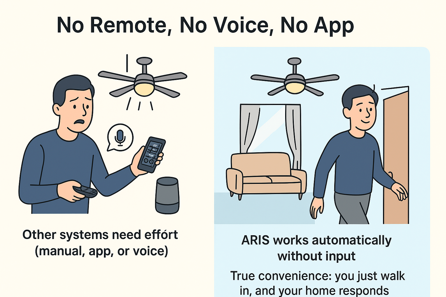 No Remote, No Voice, No App โ bas room me enter karo aur sab apne aap ON ho jata hai! AI That Understands You โ subah se shaam tak ARIS samajhta hai aapki habits. Complete Room Automation โ sirf bulb nahi, poora room manage hota hai ARIS ke saath. #