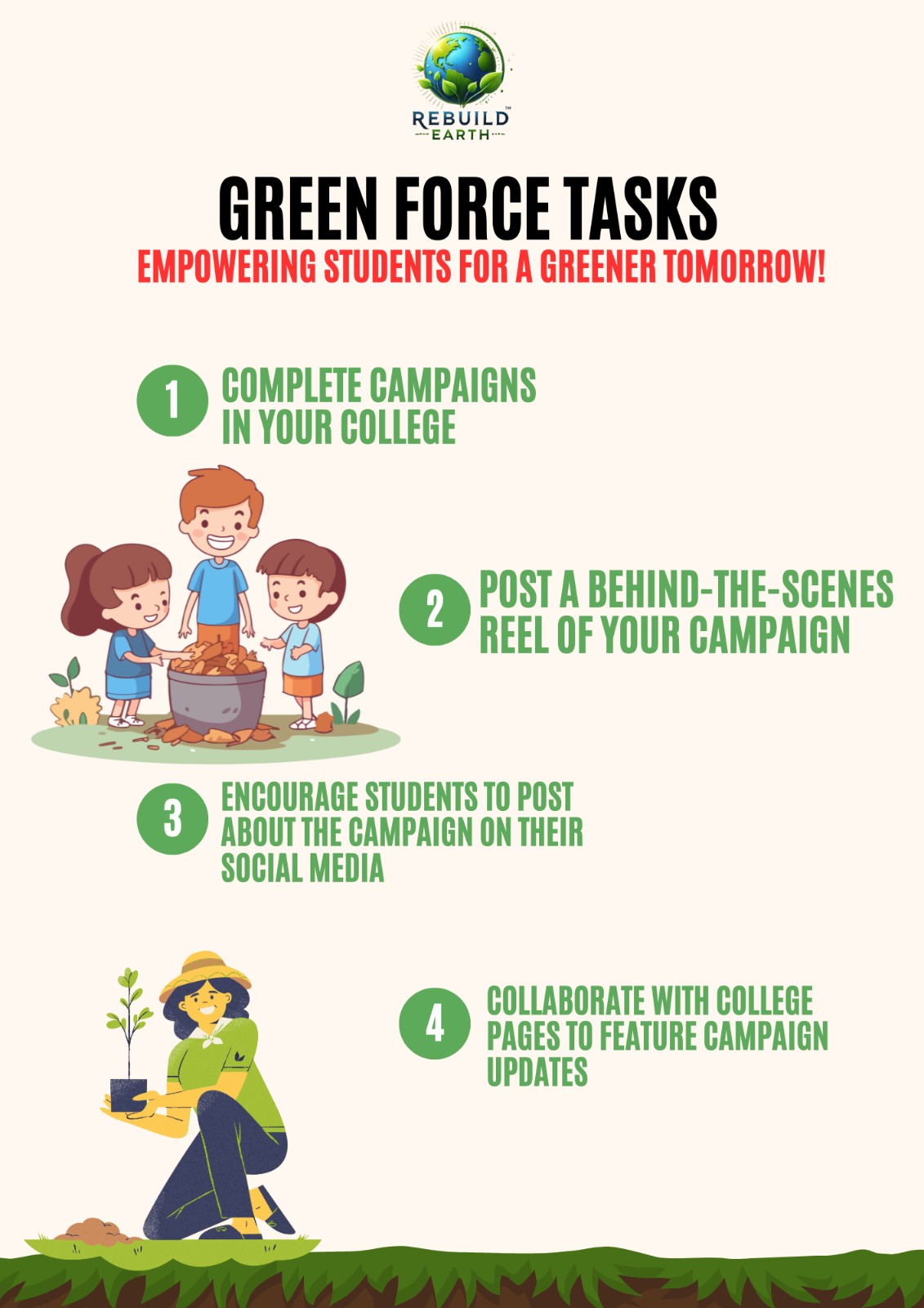 Green Force College Campaign Tasks! Hey Green Warriors! ๐ Your mission is clear: โ Complete your college campaign successfully ๐ ๐ฅ Post a behind-the-scenes reel of your journey ๐ธ ๐ค Collaborate & tag us from your college page ๐ Letโs make an